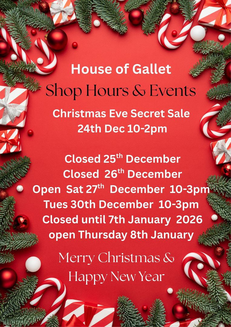 There is a guest list so please do get in touch if you wish to be added to it 01962 735362 or email joanne@houseofgallet.co.uk